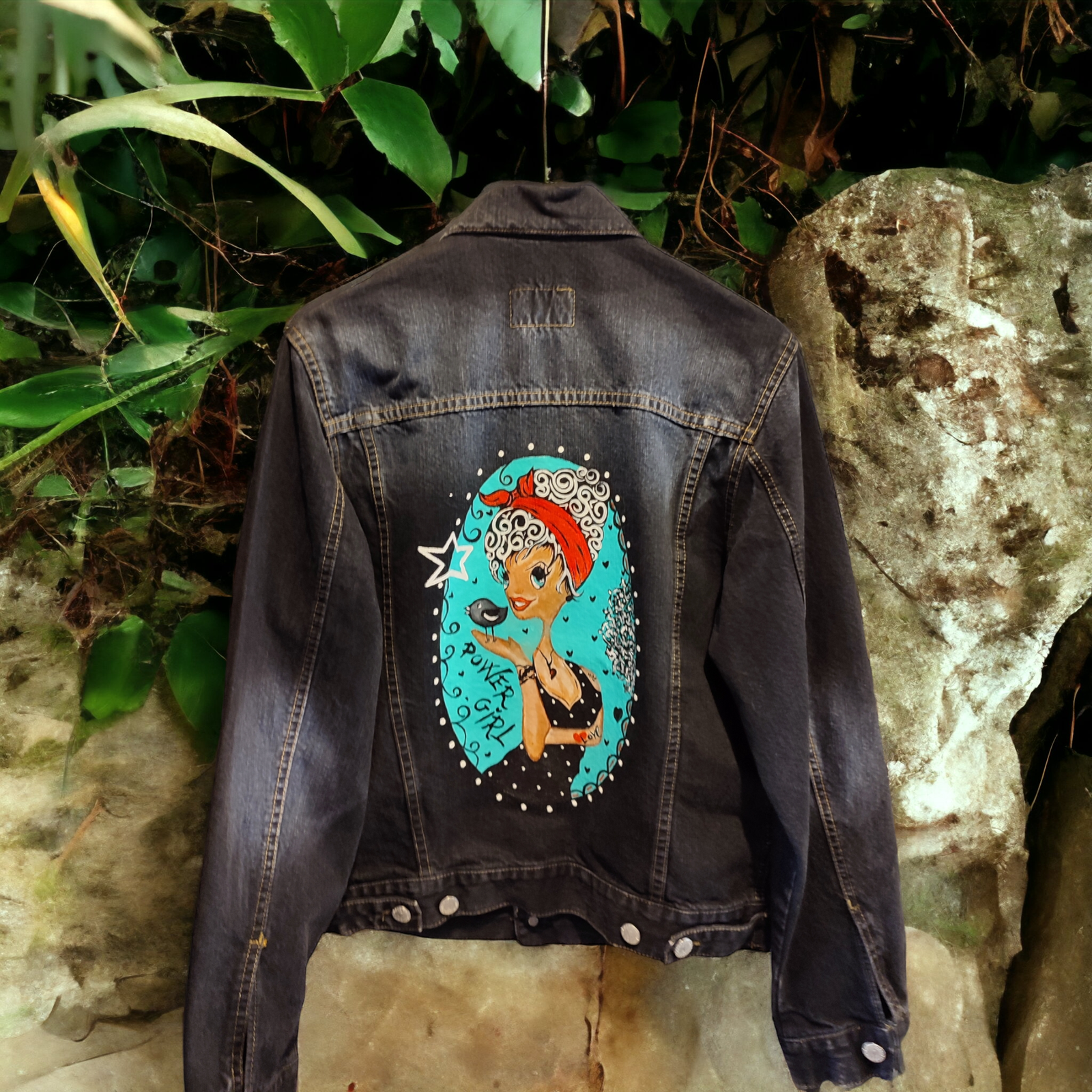 El arte y la moda se encuentran en esta pieza única, pintada a mano con técnicas de alta calidad, que aseguran un acabado impecable, resistente y duradero. Cada pincelada cuenta una historia de empoderamiento y autenticidad, haciendo de cada cazadora una obra de arte personalizada.